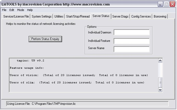 by downloading the FLEXlm tools for Windows from the TMP Vision/SLIM