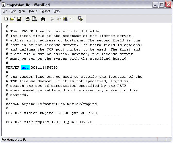 download page. Once you have unpacked the FLEXlm tmpinc vendor daemon